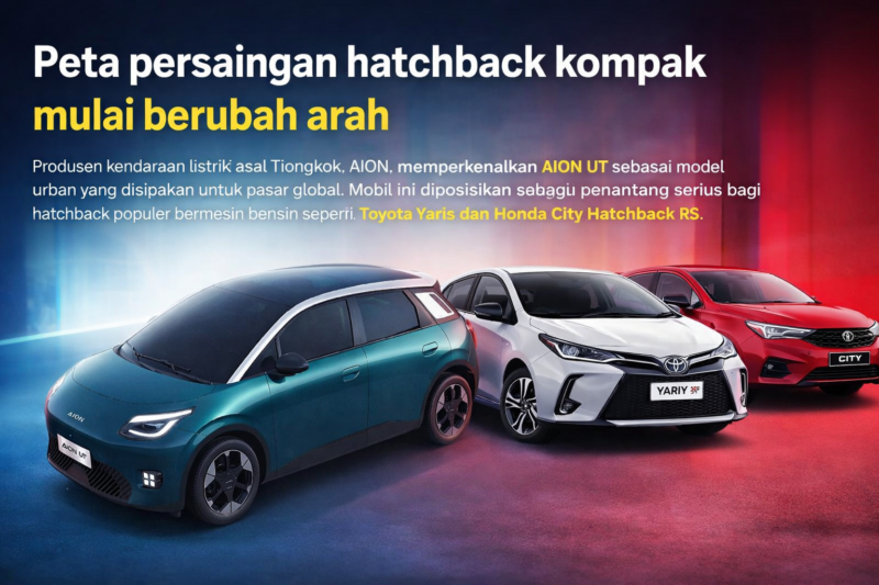 KLIKINAJA – Peta persaingan hatchback kompak mulai berubah arah. Produsen kendaraan listrik asal Tiongkok, AION, memperkenalkan AION UT sebagai model urban yang di siapkan untuk pasar global. Mobil ini di posisikan sebagai penantang serius bagi hatchback populer bermesin bensin seperti Toyota Yaris dan Honda City Hatchback RS.