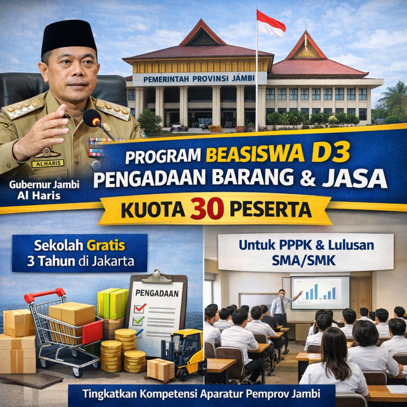 “Jambi mendapatkan alokasi 30 kursi untuk D3 pengadaan barang dan jasa. Saya minta masing-masing OPD segera mengirimkan perwakilan terbaiknya,” ujar Al Haris.