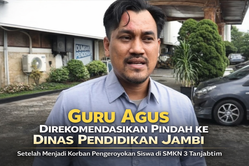 KLIKINAJA – Masa depan Guru Agus Saputra di dunia pendidikan tengah berada di persimpangan. Setelah insiden pengeroyokan yang menimpanya di lingkungan sekolah, Pemerintah Provinsi Jambi memberi sinyal akan mengalihkan tugasnya ke instansi dinas, bukan lagi mengajar di kelas.