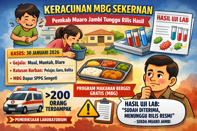 KLIKINAJA – Dugaan keracunan massal usai konsumsi Makanan Bergizi Gratis (MBG) di Kecamatan Sekernan, Kabupaten Muaro Jambi, memasuki babak baru. Pemerintah Kabupaten Muaro Jambi memastikan hasil uji laboratorium terhadap sampel makanan dari dapur SPPG Sengeti telah di terima.
