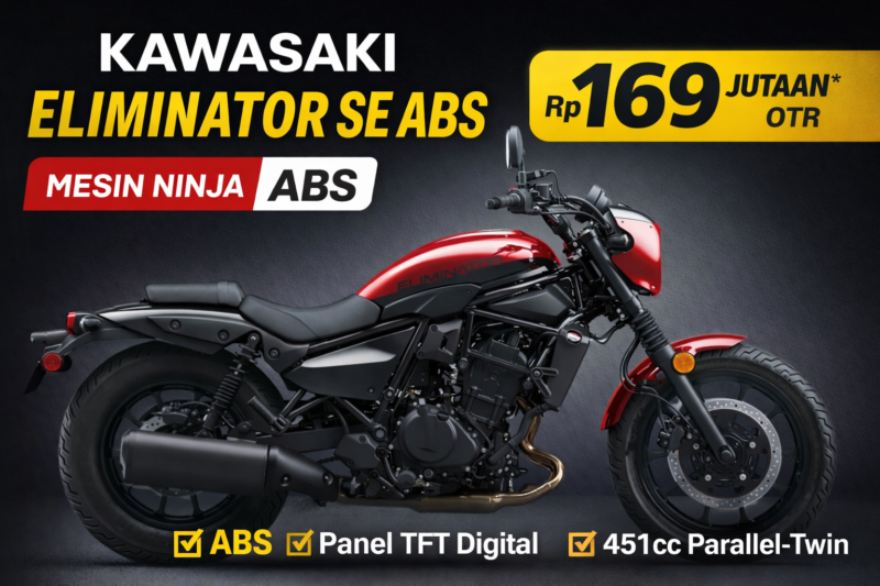 Untuk pasar Indonesia, harga Kawasaki Eliminator SE ABS berada di kisaran Rp 169 jutaan (OTR Jakarta). Angka tersebut menempatkannya di segmen cruiser 400–500cc yang menyasar pengendara profesional muda maupun pecinta motor bergaya custom-modern.