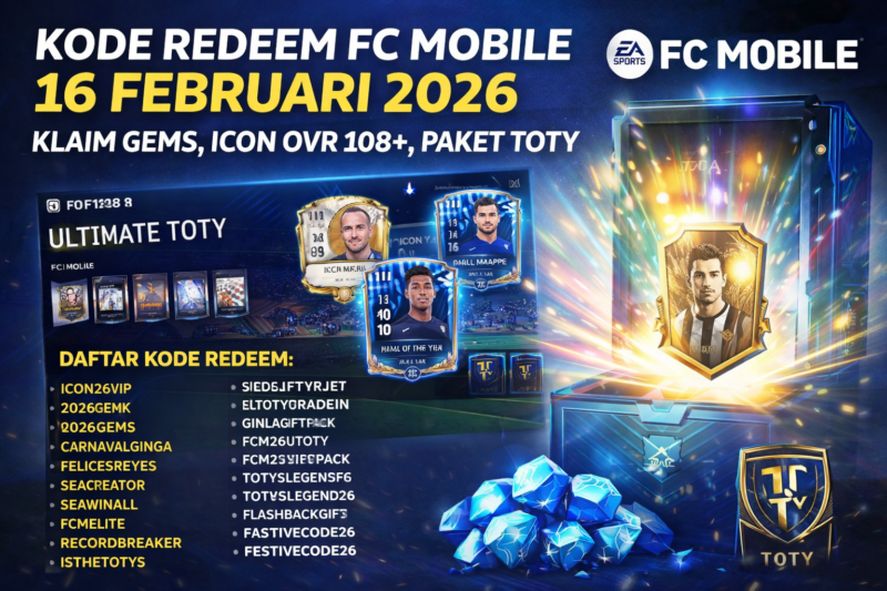 Kode Redeem FC Mobile 16 Februari 2026: Klaim Gems, Icon OVR 108+, hingga Paket TOTY