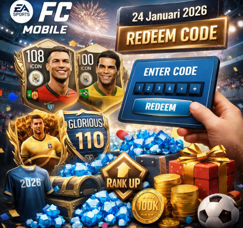 KLIKINAJA – Komunitas EA Sports FC Mobile kembali di suguhi kejutan di penghujung pekan. Pada Sabtu, 24 Januari 2026, EA Sports merilis deretan kode redeem terbaru yang dapat di tukarkan pemain untuk memperoleh berbagai hadiah bernilai tinggi, mulai dari Gems dalam jumlah besar, Rank Up Item, hingga kartu pemain elite dan Icon OVR tinggi.