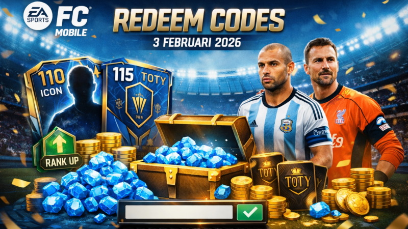 Memasuki pekan pertama Februari, pemain bisa memanfaatkan puluhan kode yang masih tersedia. Beberapa di antaranya menawarkan bonus besar seperti Gems ribuan unit, Rank Up instan, hingga paket Team of the Year (TOTY).