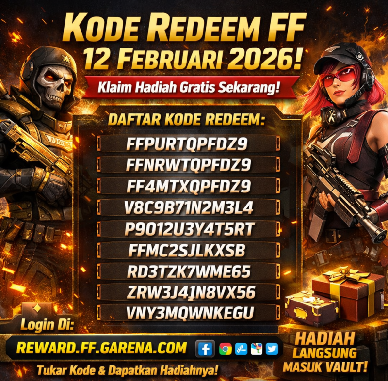 KLIKINAJA – Pemain Free Fire kembali berburu hadiah gratis lewat deretan kode redeem yang di rilis pada Rabu, 12 Februari 2026. Kode ini menjadi incaran karena bisa di tukar dengan berbagai item premium tanpa perlu mengeluarkan diamond.