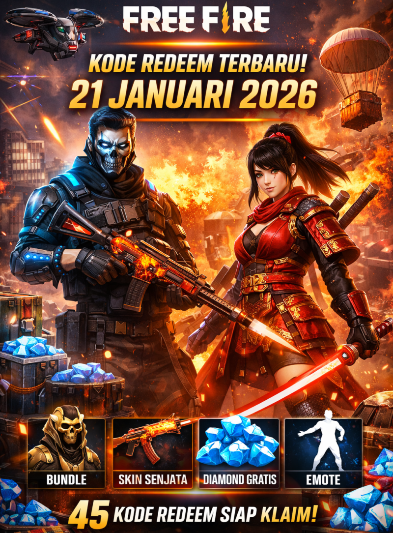 KLIKINAJA – Garena kembali memanaskan antusiasme komunitas Free Fire dengan merilis puluhan kode redeem FF terbaru yang dapat di klaim pada Selasa, 21 Januari 2026.