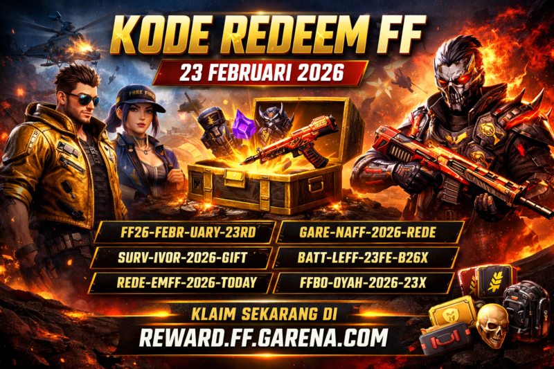 KLIKINAJA – Pemain Free Fire kembali berburu hadiah gratis. Pada Senin, 23 Februari 2026, sejumlah kode redeem di bagikan dan bisa di tukarkan dengan beragam item menarik, mulai dari skin senjata, bundle karakter, hingga voucher dalam permainan.