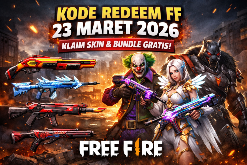 KLIKINAJA.COM – Para pemain Free Fire (FF) kembali di suguhkan deretan kode redeem terbaru pada 23 Maret 2026. Kode ini membuka peluang mendapatkan berbagai item menarik tanpa harus mengeluarkan diamond, mulai dari skin senjata hingga bundle karakter yang jarang muncul di shop.