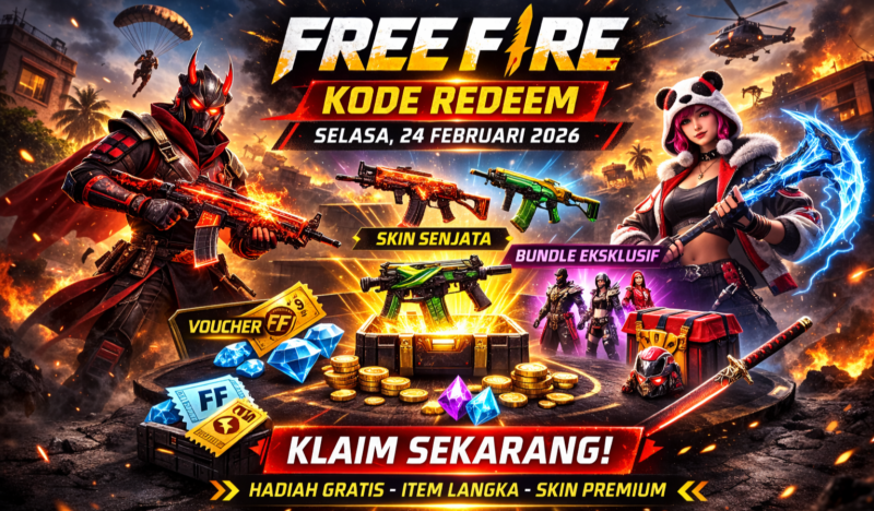 KLIKINAJA – Kabar gembira bagi pemain Garena Free Fire. Pada Selasa, 24 Februari 2026, sejumlah kode redeem kembali di bagikan dan bisa di tukarkan dengan berbagai hadiah menarik.