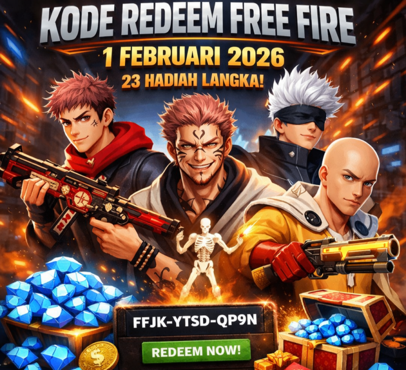 KLIKINAJA – Pemain Free Fire kembali mendapat angin segar di awal Februari 2026. Garena merilis deretan kode redeem terbaru yang dapat di tukar dengan item eksklusif, mulai dari skin senjata edisi kolaborasi anime hingga diamond gratis dalam jumlah terbatas.