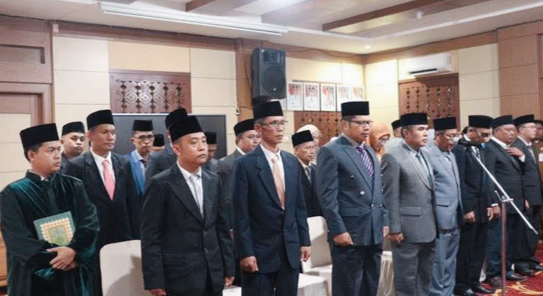 Suasana berlangsung tertib, penuh nuansa tanggung jawab. Setiap pejabat berdiri tegap mengikuti rangkaian prosesi, menandai babak baru perjalanan karier mereka dalam pelayanan publik.