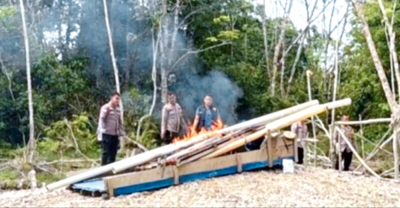 Untuk mencegah aktivitas serupa kembali berjalan, seluruh peralatan yang di temukan langsung di musnahkan di tempat dengan cara dibakar.
