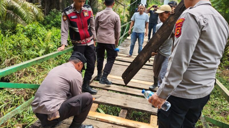 KLIKINAJA, KERINCI – Polres Kerinci melaksanakan bakti sosial berupa renovasi jembatan rusak di Desa Pengasih Baru, Kecamatan Bukit Kerman, Kabupaten Kerinci, pada Sabtu, 13 Desember 2025.