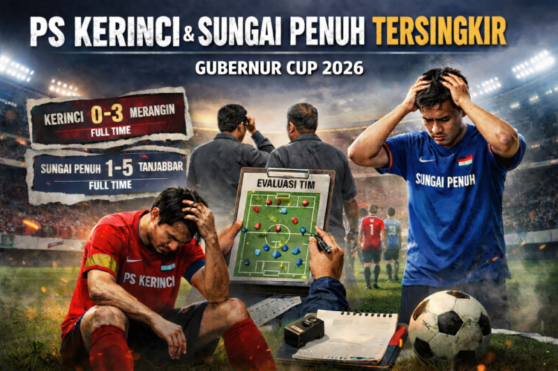 KLIKINAJA – Harapan PS Kerinci dan Kota Sungai Penuh untuk melangkah jauh sekaligus meraih gelar juara pada ajang Gubernur Cup 2026 harus kandas lebih cepat. Kedua tim asal wilayah barat Provinsi Jambi itu di pastikan angkat koper di fase awal setelah gagal mengumpulkan poin maksimal dari laga penyisihan grup.