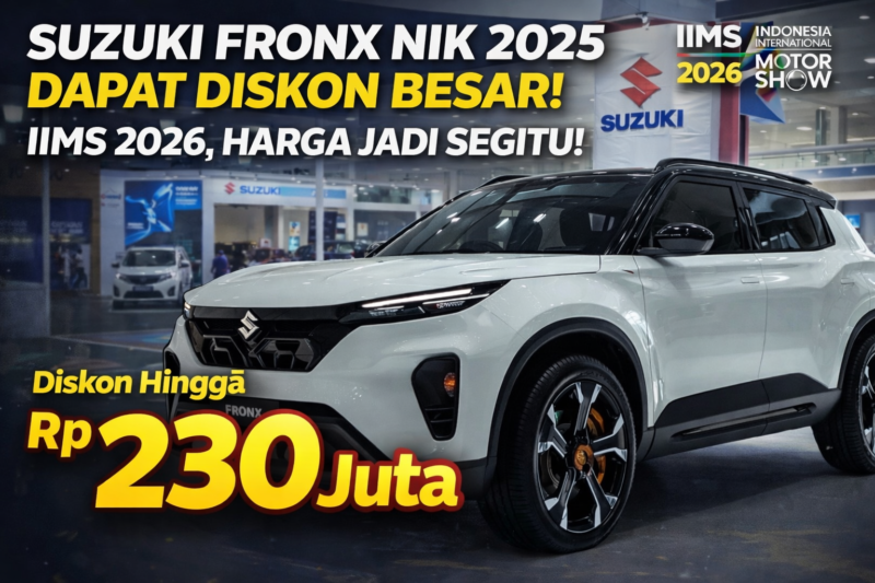 KLIKINAJA – Ajang Indonesia International Motor Show 2026 (IIMS 2026) di manfaatkan maksimal oleh Suzuki Indomobil Sales untuk menghabiskan stok unit Suzuki Fronx NIK 2025. Model bergaya SUV coupe ini mendapat suntikan promo menarik, membuat banderolnya terkoreksi cukup dalam di banding harga normal.