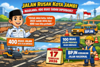 KLIKINAJA – Gelombang keluhan soal jalan berlubang dan rusak di sejumlah titik Kota Jambi terus berdatangan. Wali Kota Jambi, Maulana, akhirnya memberikan penjelasan terbuka…