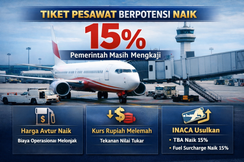 KLIKINAJA.COM – Rencana kenaikan harga tiket pesawat domestik kembali mencuat. Kali ini, usulan datang dari Indonesian National Air Carriers Association (INACA) yang mendorong penyesuaian tarif batas atas (TBA) hingga 15 persen.