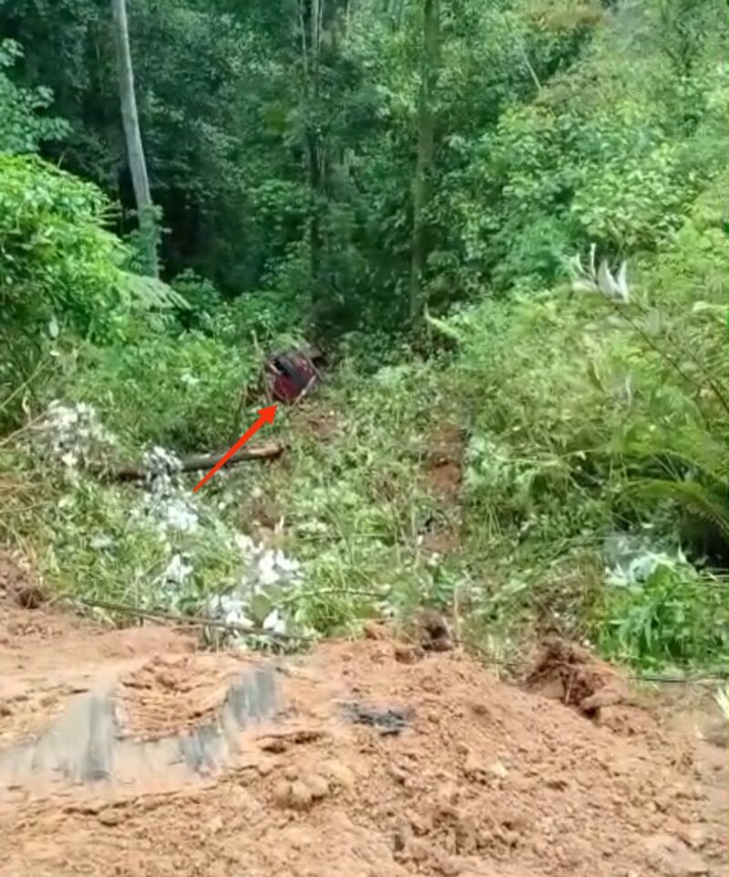 Ban kanan truk diduga turun ke bahu jalan, menyebabkan kendaraan oleng sebelum akhirnya terperosok ke jurang. Kerugian material dari kejadian ini diperkirakan mencapai sekitar Rp50 juta.