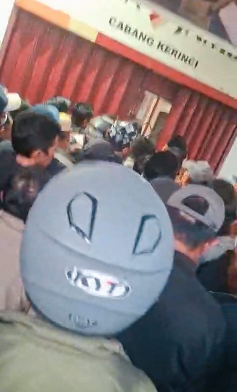 KLIKINAJA.COM – Rekaman video yang memperlihatkan ratusan warga berdesakan di depan Bank Jambi Cabang Kerinci di Kecamatan Siulak ramai di bicarakan di media sosial pada Sabtu, 14 Maret 2026.